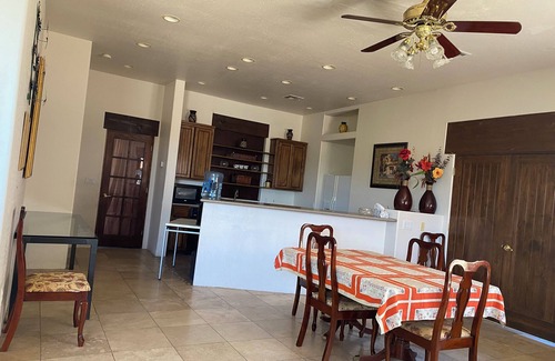 Welcome to this charming ground level guest house in Gold Canyon. This amazing property features a cozy bedroom with a queen bed, a lovely living room, and all the essentials like WiFi, a washing machine, and AC. Guests can relax and unwind in this enjoyable space, perfect for both short getaways or longer vacations. Our place is equipped for both long or short stays. The Guest House is a private area of a larger property featuring amazing Mountain Views all around.