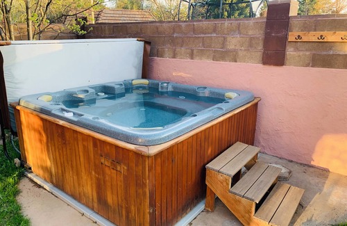 Full access to the one-bedroom unit. The courtyard is all yours and the hot tub is for guests only. Our family with two elementary-age kids lives upstairs. You will be able to hear some noise from upstairs.