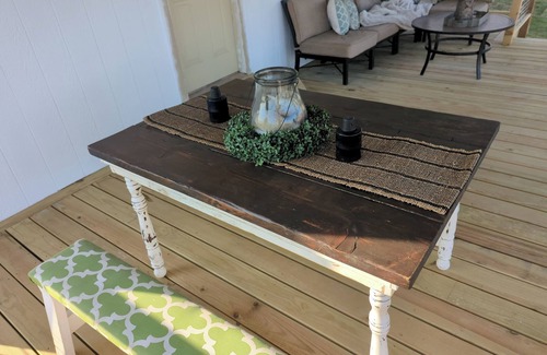 Unwind with us at this pleasant country house. 1 cozy bedroom comfortable king size bed, additional adult cots (2) and (1) infant pack and play available , heating & AC, with a new full washing machine & dryer for your convenience, a hair dryer, and also iron for clothing guests will have everything they need for a pleasant stay. The bathroom is well-equipped for your convenience. Big screen TV and free WiFi and small kitchenette including coffee pot & coffee, refrigerator and multi-use microwave if you choose to cook a meal. Very spacious front and back porches We hope you enjoy what our place has to offer.