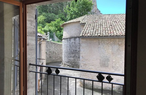 This unique and charming house is a restored 17th century ruin which was originally part of the Saint Marcel Church complex. The main floor contains a kitchen/ living/ dining area. The second floor offers a large bedroom with a double bed, a bathroom and a terrace. A mezzanine floor (loft) above the bedroom offers a second double bed. Shopping and dining areas of Sisteron are within walking distance. Visitors can also easily walk to the Citadel and other historic sites.