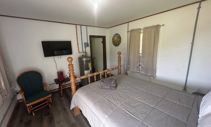 You won’t want to leave this charming, one-of-a-kind place located just minutes from downtown Copperhill! Clean comfortable 1 bedroom motel room with full private bathroom. Comes with your essentials, such as soap, shampoo, linens, towels, smart tv, wifi, coffee and more! Sahara Club has a bar & grill with delicious food, live music, drive thru, and lots of outdoor space to enjoy a walk and stretch out. There is a ice vending machine, laundry room, and fire pit on site as well!