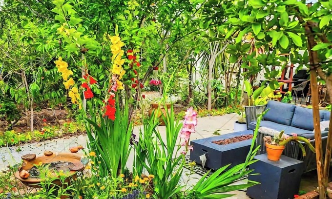 Stay in a world of flowers and fruit trees 10 minutes from downtown San Diego. Strung with lights among the trees and complete with a generously sized, shaded alfresco space, this fully fenced, private yard is that of a botanical fairytale both day and night. Grab breakfast off of one of the 70 fruiting trees throughout the yard with homemade espresso in hand. Relax by the fire pit at night. This charming home is a perfect escape while still remaining close to all the perks of the city.