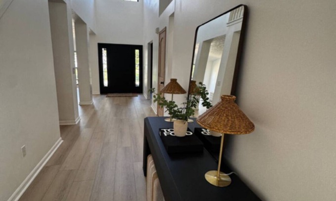 Your own private downstairs living area within the home. Enjoy the entire lower level with shared front entry; family or guests may be upstairs. Includes large sectional sofa, TV, Wi-Fi, bedroom with two twin beds, closet, full bathroom, and dining area. Microwave, small fridge, and a 3-in-1 breakfast station with toaster oven, coffee maker, and griddle for light cooking. Upstairs is not part of your booking, but your lower level is fully private.