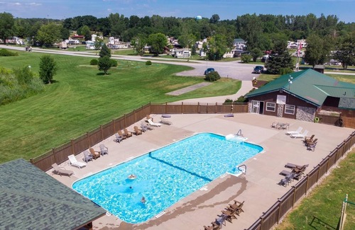 Plattsburgh RV Park’s cabins provide the conveniences of home in a camping atmosphere. Cabins measure 15’ x 33’ and are constructed with Hemlock tongue-and-groove logs and insulated metal roofs. They are one bedroom, one full bath with a living room, galley style kitchen and 6’x15’ loft space that is ideal for kids’ quarters. The cabins are fully furnished with the following amenities: Kitchen appliances: Stove, refrigerator and microwave Pots and pans Dishes and cutlery Futon sofa Dining room table and chairs Full size bed Mattress(s) in loft area Pillows and bedding* Towels* Flat screen television with cable Free WIFI Barbecue grill (gas) *Guests are responsible for maintaining the linens during their occupancy. In addition, the cabins are insulated and heated with natural gas. We provide public water and sewer. All utilities are included in the daily/weekly rate with the exception of telephone service. Best of all you will have access to our beautiful heated pool, clubhouse, and laundry facilities. Located walking distance to Lake Champlain!