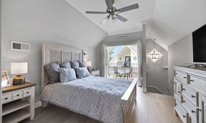 When you enter the upstairs one bedroom villa, you'll be welcomed by the cozy space for two. Please note, this is setup similar to a hotel room with studio, and private bath. From there, you'll notice your cozy balcony perfect for coffee in the morning or to watch an evening sunset. The bathroom is right off the bedroom and equipped with a shower/tub. This private space is yours to relax until it's time to hit the sheets.