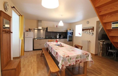 On the ground floor, spacious living room with flat screen TV, fireplace (free wood insert), wifi internet access, fitted kitchen area, bathroom with toilet, laundry room. Upstairs, 1 bedroom with 1 double bed, 1 bedroom with 2 single beds, shower room with toilet. Baby equipment. Fuel heating included. Prices include all charges.