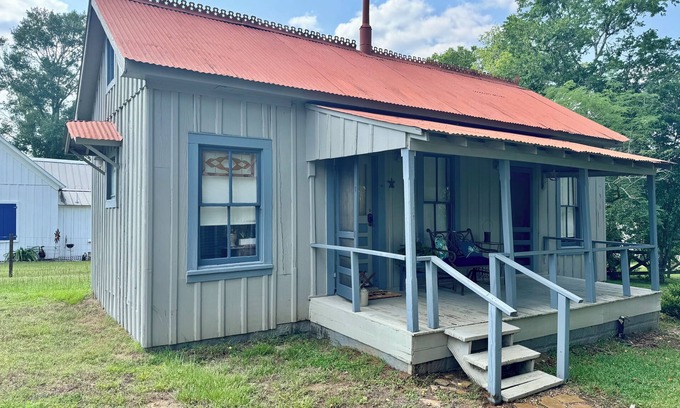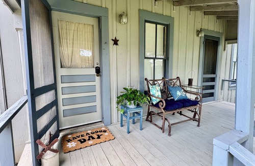 Charming one-bedroom guest cottage located a mere 15 miles from Round Top with antique decor, private porch, full bathroom, mini fridge, and coffee machine. Featuring one full bed & a day bed with a trundle. Just a short walk to a local bar, coffee shop, and two restaurants in the quaint country town of New Ulm. The cottage sits on a shared property with the friendly owners, who are available for any questions or concerns during your stay—offering hospitality that’s as warm as the setting!