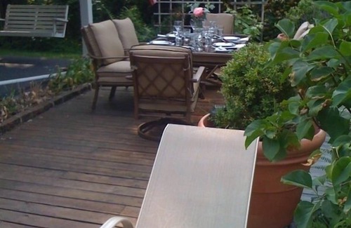 Relax on the garden's porch swing while reading and sipping your favorite lemonaid. Later enjoy some stargazing from your luxurious outdoor spa while planning the next day's ferry ride, antiquing or golf game.