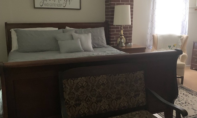 Charming 1920s 4-bedroom farmhouse in lovely Bedford is located in Peaks. Charming 1920s 4-bedroom farmhouse in lovely Bedford provides accommodation, featuring Parking, TV, Bedding/Linens, among other amenities. This Other features Parking, TV, Bedding/Linens, to make your stay a comfortable one.