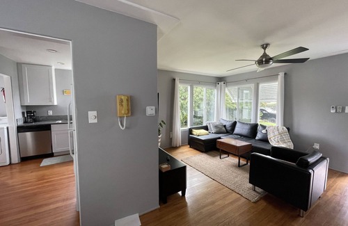 Our home has been thoughtfully preserved to maintain its retro charm while adding all the modern amenities you need for a comfortable stay. The two bedrooms offer cozy bedding and coastal decor, ideal for unwinding after a day at the beach. The bathroom features modern tiling and updates blending style and function. The inviting living room is a relaxing space for unwinding, and the fully equipped kitchen with nook lets you prepare meals to enjoy at home.