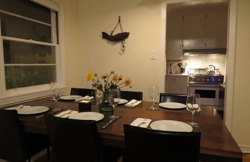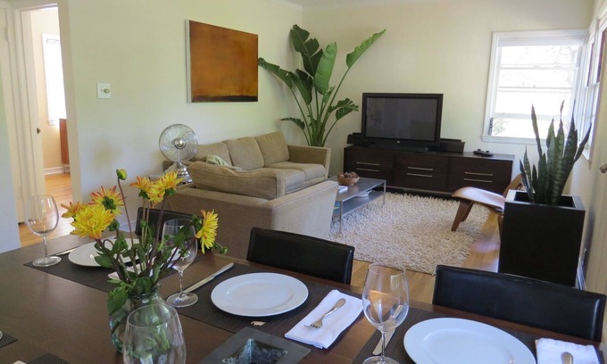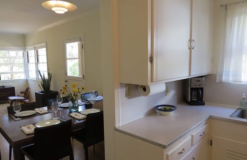 Charming 1940's wine country cottage, with many original features including hardwood floors throughout (except bathroom), original cabinets, and decorative scalloped crown moulding. The vintage "shell" is complemented with a professional Viking Dual-Fuel Stove, and modern and mid-century modern furniture.
