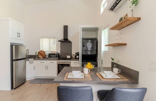 The kitchen is fully equipped with everything you need, from modern appliances to all the essential cookware, making it easy to prepare your favorite meals. The bedroom features a plush queen-size bed and ample closet space, providing a restful sanctuary to recharge. The bathroom is both stylish and functional, with a spacious walk-in shower and all the amenities to help you feel at home.