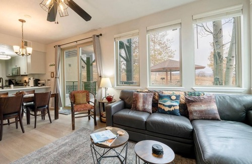 Providing a five-star vacation experience, Crestview Condominiums boasts peaceful surroundings, scenic views, modern amenities, and an incredibly convenient and accessible location. This condo offers nearby access to everything you need while providing a quiet retreat from the noisy bustle of the slopes! Just walk across the street to reach the outlet mall, free public transit to the ski resorts, Whole Foods, or tons of other dining and shopping options. This complex recently completed a full exterior building renovation, so you can enjoy upgraded windows and exterior doors as well as a stylish brand-new private patio.