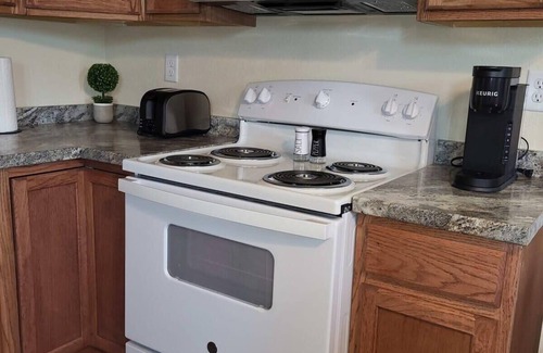 This delightful apartment features modern amenities designed with your comfort in mind. Enjoy complimentary wireless internet and Vizio Smart TVs in both the living room and bedroom for streaming your favorite shows. The fully-equipped kitchenette includes essential appliances like a microwave and Keurig coffee maker, as well as a small dining table for intimate meals. You will have access to the entire apartment, allowing you to unwind and enjoy your time together without any disturbances.