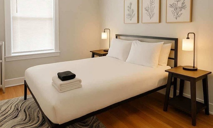 Step into a sun-filled living area with warm hardwood floors, thoughtfully curated decor, and a comfy sofa that’s perfect for unwinding after a day in the city. The bedroom features a plush queen bed, soft linens, and plenty of closet space to settle in.