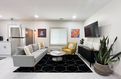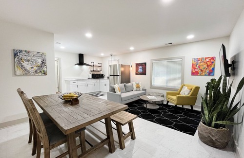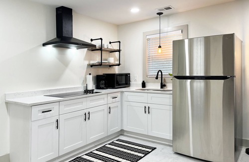 As you enter our freshly remodeled 1 bedroom/1 bathroom private in-law suite, you are welcomed by a charming kitchenette that opens up into the cozy living room and dining area. The suite offers high end renovations and modern furnishings that make the space feel comfortable and intimate.