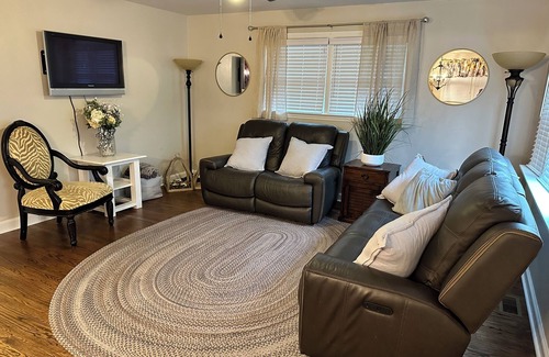 Make yourself at home in this 2-bedroom Kingsport retreat. This pleasant house offers everything you need for a fantastic stay. With amenities like a hair dryer, heating, AC, a washing machine, and an iron, you'll have all the comforts of home. The 2 bathrooms provide convenience for all guests. Our enchanting property will help you feel at home while you're traveling in Kingsport. The house is equipped with a fire pit and Adirondack chairs in the fenced in back yard. It has all of the safety amenities such as a carbon monoxide, smoke detector, first aid kit, and smoke alarms. It comes with WIFI and two televisions for your stay. The Keurig coffee pot will make you feel right at home each morning as you enjoy your stay in this charming house. We hope you enjoy your stay!