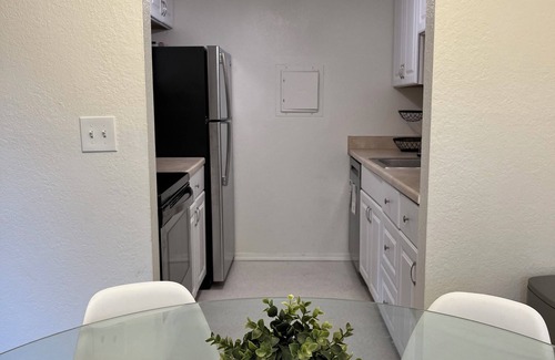 Enjoy the luxury of a zero gravity massage chair with built in Bluetooth speakers, a unique lazy Susan built-in revolving dining table, and a brand new smart TV with Alexa voice. The condo is freshly updated with new carpet, paint, and appliances, and includes an automated Haier swipe touch easy to use washing machine with lots of options and dryer in-unit for your convenience. All the kitchen appliances that you may need and more… Basic essentials are also provided to make your stay even more comfortable.
