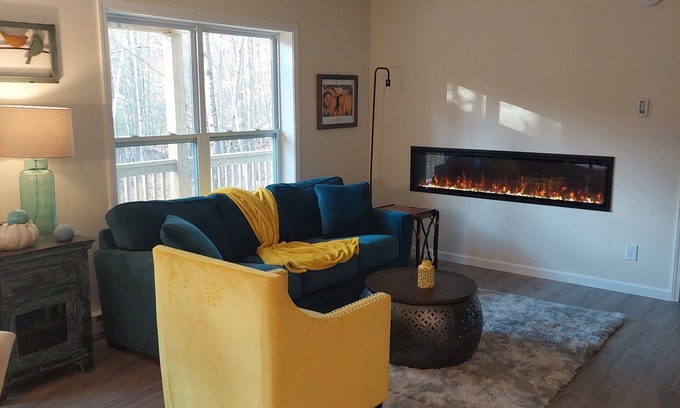 This Jay house boasts 2 inviting bedrooms, each has a queen bed and each with their own large bathroom. Each bedroom has an electric fire place and a sliding glass door leading to the deck. With a cozy living room featuring a sofa bed and an electric fireplace, guests can relax and unwind after a day of exploring. The property offers essential amenities like heat, WiFi. The deluxe kitchen as a dishwasher, built in wine cooler, under the counter microwave, refrigerator with a water and ice dispense and a large island with stools. The half bathroom as a washer and dryer. The bathrooms are equipped with hair dryers and showers for a pleasant stay. Our place will help you feel at home while you're traveling in Jay. There is a charcoal grill and a solo fit pit out side. The house is 12 miles from Whiteface Mountain and 17 miles to Lake Placid. Santa's vilaage is close by as is Ausable Chasms.