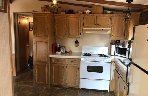 Inside the cabin you will find a master suite with 1 queen bed and 1 twin with a full bath, the second bedroom has 1 queen bed. The second full bathroom features a 22 in soaking tub! We have a spacious living area with a smart TV and WIFI. The kitchen has all of the tools you need to whip up a fabulous dinner to share with family. For those that prefer to grill while on vacation, we have one of those just out the sliding door on a large deck.