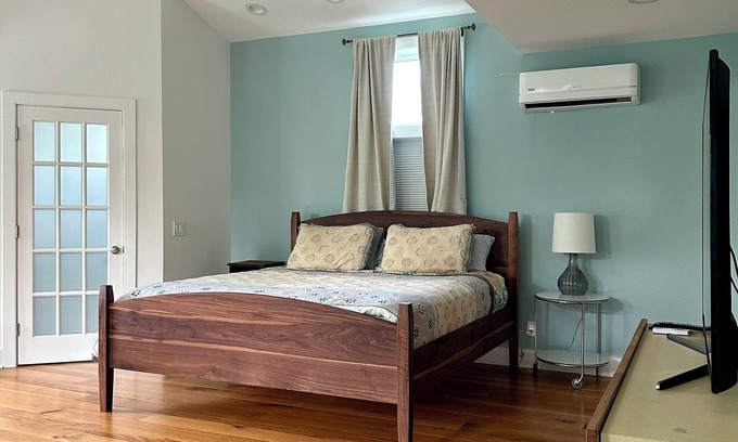 Your cozy getaway awaits in Princeton at this lovely apartment in our 1770 farmhouse. With 2 bedrooms featuring a king and queen bed, 65" tv, 2 bathrooms with showers,, and essential amenities like WiFi, AC, soaps, linens, you will feel right at home. Whether you're exploring the downtown or retreating to the country, this 250 year old property is the perfect base for your stay.