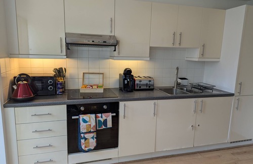 The apartment features sleek, contemporary design with an open-plan living area, a fully equipped kitchen, and two cozy bedroom with high-quality linens. Enjoy the convenience of high-speed Wi-Fi, smart TV, and indipendent heating, ensuring a comfortable stay. The bathroom is fitted with premium fixtures and a good size bath for a relaxing experience.