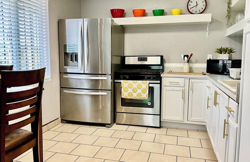 Experience Albuquerque in style at this newly renovated 2 BR/1 BA apartment. This unit is centrally located with easy access to the freeway, close to Uptown, Coronado mall, Costco and Walmart. This apartment comes loaded with comfy couches, high quality mattresses, overhead fans in every room, 65” smart TVs, 500 mbps high speed internet. Kitchen is fully equipped with stainless steel appliances, ready to prepare your favorite meals. Everything in this apartment has been carefully selected for the enjoyment of our guests. Pack&Play available on the master bedroom. Free off street parking on premises. Cameras and lights installed for extra peace of mind. Meticulously cleaned before your arrival.