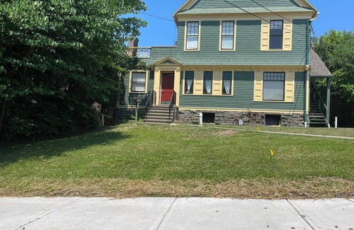 Located in Ithaca, enjoy what this 2-bedroom apartment has to offer. With 1 queen bed and 2 full beds, guests can relax in comfort. The apartment includes WiFi, heating, and AC for convenience. The bathroom comes equipped with a hairdryer and shower. Our place will help you feel at home while you're traveling in Ithaca. Our restful, art-infused suite is perfect for relaxing between exploring! After walking to The Commons, where the best restaurants and people-watching happens. Or exploring the many waterfalls, lakes, gorges (Ithaca is Gorges!), or hiking trails. Or a movie at Cinemapolis or Cornell Cinema. The breathtaking beauty of the Herbert F. Johnson Museum of Art or in one of our many galleries! You are never far from anything of interest to the mind, body, or spirit when you stay on State Street. Enjoy free parking in the back of the property. Also, a shared picnic area and greenspace are yours to enjoy. The property has motion-detection lighting. We live on the premises but respect your privacy. The Suite comprises the front of the house with a separate entrance (4 stairs) for your use only. The Suite is one floor for ease of movement, with no stairs inside the unit. This is a totally private and separate unit. The home-owners live on site, but respect all privacy.