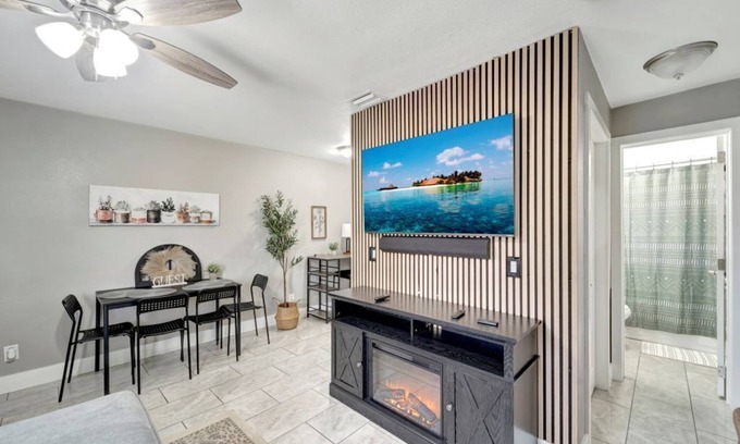 Consider this apartment your home away from home while you visit Pahokee. This marvelous property features 2 charming bedrooms with king beds, a pleasant bathroom with a bathtub, and an additional living room space with a cozy sofa bed. Guests can enjoy amenities like a hair dryer, heating, iron, AC, and WiFi during their stay. We look forward to hosting you at our place.