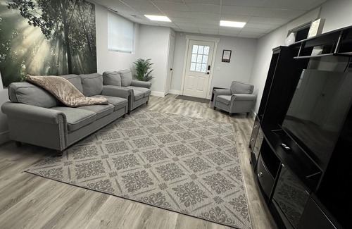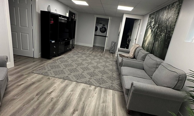 Welcome to this charming basement house in Buford. This cozy retreat features 2 bedrooms with 2 queen beds and 1 twin bed, perfect for a small group of guests. The bathroom is equipped with a shower and a hair dryer for your convenience.this house has a full kitchen and laundry. Also has living room with sofas and TV. Enjoy the excellent WiFi connection and the pleasant heating and AC system. Feel free to reach out to us during your stay - we're happy to suggest local spots to check out.