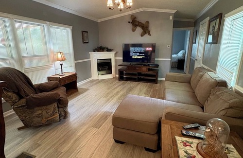 Located on Kentucky Lake, enjoy what this 2-bedroom upscale mobile home has to offer. With 1 queen bed and 1 full bed, guests can relax in the lovely bedrooms. The property features heating and AC for ultimate comfort, along with 2 bathrooms, one of which includes a jetted bathtub.