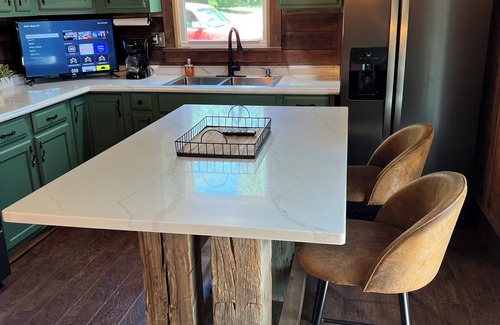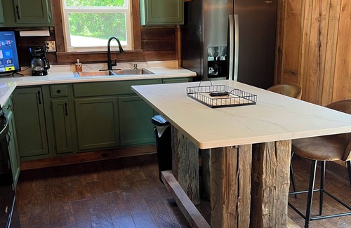 A complete and totally renovated 1800’s log cabin that has had a complete restoration. This is a very private cabin located in a 2.5 acre woods. This stunning property features 1 queen bed and 2 twin beds with an option to bring your own air mattress to accommodate more guests. A bathroom with a walk-in shower, professional hair dryer, professional flat iron and furnished with top quality hair products and hand made goat milk soap from www.salonsixtysix.shop. Other essential amenities like WiFi, AC, heating, washer and dryer. Our place is equipped for both long or short stays to make your holiday one to remember especially with a BRAND NEW 5 person hot tub!