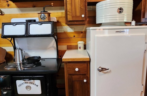 The cabin features a cozy living room with comfortable seating, antique piano, and a large window that allows plenty of natural light to flood in. The cabin also comes with modern amenities such as Wifi, so you can stay connected with your loved ones or stream your favorite shows.