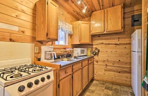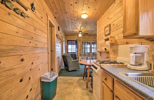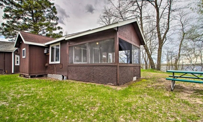 Calm waters and endless days of fishing await at this authentic cabin where avid anglers will flourish. Fitted with activities so loved ones can tag along, this 2-bedroom, 1-bath vacation rental community comes with canoes, boat docks, a fish cleaning room, a fire pit, and a swing set, along with a private screened-in porch and gas grill when you’re looking to retreat further in. You’ll be close to town, a myriad of lakes, hiking trails, and biking trails.
