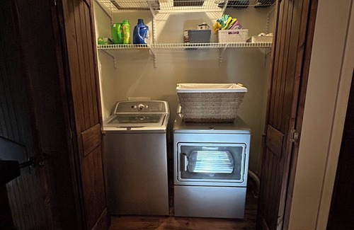 This Caledonia chalet boasts 2 lovely bedrooms with 1 king bed and 1 full bed. The serene atmosphere of the property is perfect for guests looking to unwind and relax. With amenities like AC, WiFi, and a washing machine, your stay will be as pleasant as can be. We look forward to hosting you at our place.