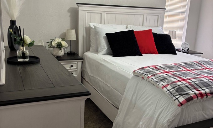 Your home away from home in Norman with 2 bedrooms. This gorgeous condo features 2 queen beds, 2 bathrooms with a shower and bathtub, and an additional office space with a sofa bed. Guests can enjoy the soothing atmosphere and cool amenities like WiFi, heating, and AC. It's easy to see why you'll be able to unwind at our place.