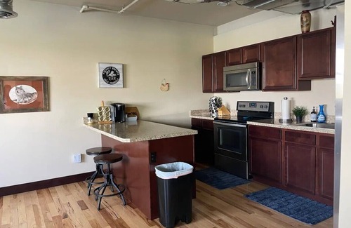 This unique property has been creatively converted from an office building to a residential living complex. The condo is equipped with basic kitchen necessities, extra pillows, and blankets, and shower essentials including shampoo, conditioner, and soap. There are also 2 fat tire bikes and a paddle board available for rent.