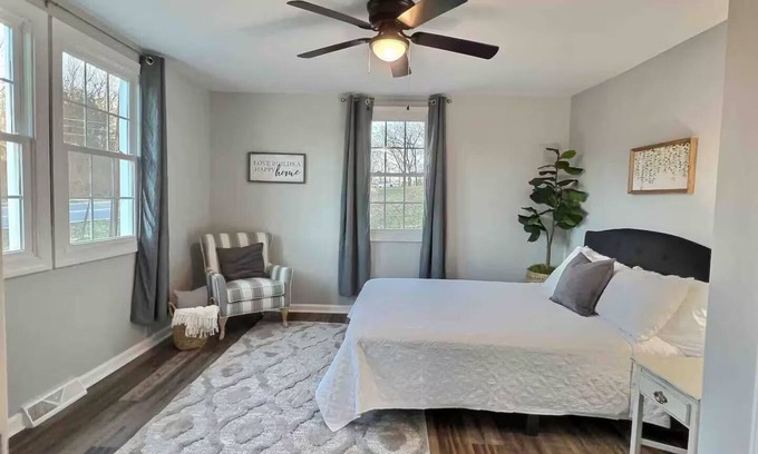 Welcome to our humble abode! Escape to this delightful cottage in picturesque Martinsville. This charming property features 2 cozy bedrooms with a queen bed and a full bed, perfect for a small group of guests. Enjoy the convenience of amenities like AC, heating, on-site laundry, and WiFi. The bathroom offers a refreshing shower for guests to relax after a day of exploring. Experience what Martinsville has to offer with a stay at our quaint house. This property is minutes away from shopping, restaurants, the Martinsville Speedway, Smith River Sports Complex, hiking trails, and so much more!