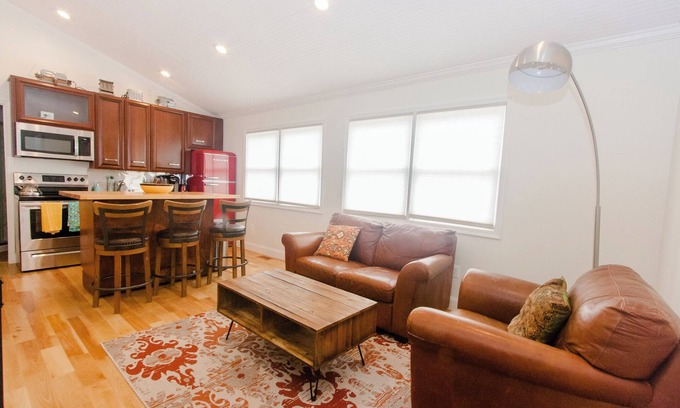 Nestled in Purcellville, this delightful cottage offers a fabulous retreat for guests on 12 gorgeous acres with a 2-acre stocked fishing pond (catch and release only please). This recently renovated 2 -Bedroom / 2 Bathroom cottage. The two bedrooms both feature Queen Beds, Full Closets, Drawer Storage, and Smart TVs. Two Full Bathrooms make sharing a space so much nicer (one with tub/shower combo and the other is a full shower). Enjoy the Open Floor Plan that includes a breakfast bar/dining space in the Kitchen that's open to the comfy Living Room with a Sofa and a very comfy oversized chair, and a 50" a Smart TV for streaming your favorites like Netflix, Amazon Prime, Hulu, etc. (subscriptions required).