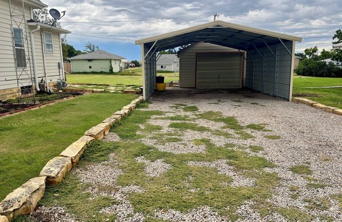 A cozy two story house located in Lucas, Kansas, the Grassroots Art Capital of Kansas. It is one block from the Garden of Eden and walking distance to the Grassroots Art center and Switchgrass Art Gallery. Eight miles away is Wilson Lake recreational area with plenty of hiking, biking, fishing, boating and swimming opportunities.