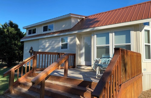 Your cozy getaway awaits in Palestine at this fabulous cottage. Located on a dead end street on a wedding venue property, this cottage has 1 bedroom with a queen bed and a loft with a full and twin bed. We provide bed linens and have a bathroom featuring a shower, towels and hair dryer. Cook dinner in the well equipped kitched on the stove or use the oven or microwave for heating items. Enjoy your coffee using the Keurig in the morning on the front deck. This charming retreat is perfect for small groups or families. Enjoy the convenience of WiFi, heating, AC, a quiet country neighborhood and an amazing view. A great place to call home base while you're away. We hope you enjoy your stay.