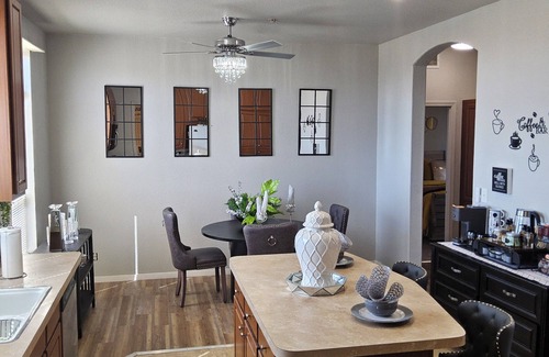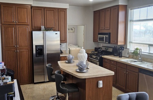 Get ready to relax in this 2-bedroom cottage in Moreno Valley. Home is on a gated private road and secured with ring cameras. The bedrooms feature a brilliant queen bed and a pleasant full bed, ensuring a comfortable stay for guests. Each room has its own private bathroom. With amenities like heating, AC, WiFi, an iron, and a washing machine, your needs are well taken care of. Our place will help you feel at home while you're traveling in Moreno Valley.