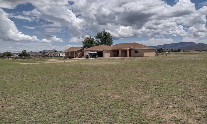 Your Prescott Valley getaway awaits at this charming 2-bedroom cottage. With 2 queen beds, AC, WiFi, and a cozy living space, guests will feel right at home. The bathroom comes equipped with a hair dryer for added convenience. Enjoy your time in Prescott Valley at our perfect cottage.Wonderfully peaceful House/cottage with 360 degree views of mountains. See the sunrise and sunset from your porch. Our space is ready to accommodate 2 or 4 person travelers. We are just 3 miles of the hwy and only 7 miles to downtown Prescott. We also can accommodate horses in the secure pasture behind the property. Bring your horses and stay with them. House is on two shared acres with great access and awesome views of the Mingus mountains