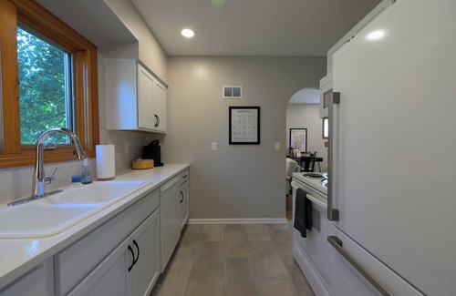 Experience modern comfort in this thoughtfully designed BnB. The galley style kitchen features sleek quartz countertops and brand new soft-close cabinetry, perfect for everything from quick breakfasts to evening meals.