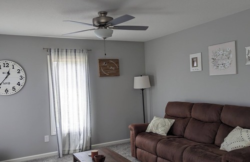 Your home away from home 25 minutes from Notre Dame, Potato Creek and Nappanee. This fabulous house sits on 17 acres and features 1 king bed and 1 queen bed, perfect for a pleasant stay. With amenities like AC, WiFi, and a washing machine, guests can relax and unwind. Beautiful sunrise and sunsets at this quiet country house. The 3 bathrooms come equipped with a hair dryer for added convenience. Plus, there's an additional living room space with a couch and queen air mattress bed for extra comfort. Book now and enjoy everything this house has to offer.