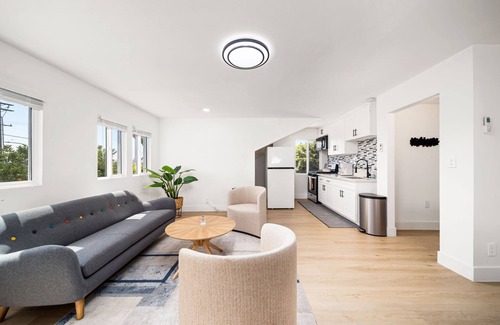 Make yourself at home in this 2-bedroom Alhambra retreat. This fabulous house features 2 queen beds, perfect for a soothing night's sleep. Enjoy amenities like WiFi, AC, and a luxury bedding, modern kitchen applicances in the open concept dining area during your stay. The living room is furnished with a deep-seated sofa, and a wood coffee table, 65-inch Samsung Smart TV. This space is designed for comfort and style, making it perfect for a relaxing stay. A great location with serene place to call homebase while you're away, we hope you enjoy your stay. Free parking is available for up to 2 vehicles per booking.