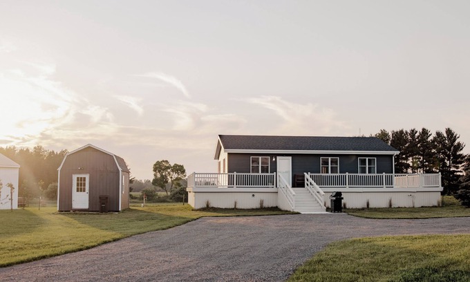 This 2-bedroom farmhouse in Scottville is perfect for your escape to relaxation. With 2 queen beds and 1 twin bed, guests can unwind in a cool and peaceful setting. Each bedroom is equipped with blackout curtains that are perfect for a good night's sleep. A wrap around deck offers plenty of room for catching both the sunrise and sunset. In the summer months you will be able to enjoy our miniature horses and donkeys. Don't worry, you aren't expected to feed them. We stop by every morning to give them grain and check on them. We won't be by the house. There is a driveway that splits off from the main drive that takes us to the barns. A Ring Spotlight Camera is located above the front door to provide adequate light for those late nights coming home. The 9 acres give the perfect blend of freedom and privacy. Located only minutes away from both the Pentwater and Ludington beaches and a short drive to ATV and snowmobile trails.