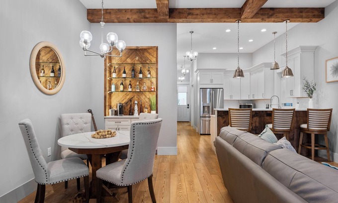 This modern luxury unit boasts a first-floor apartment with two bedrooms, full access to a private back patio/outdoor space, beautiful kitchen with dining area and shared front porch.
