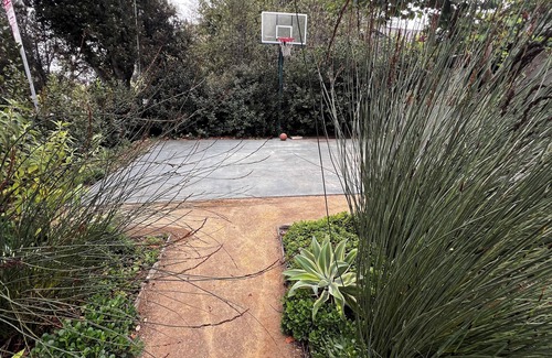 Nature lovers will feel right at home among the thoughtfully designed garden spaces. Nearly every window and door frames a lush, green view, creating a seamless connection between indoors and out. Enjoy morning coffee or evening relaxation in the zen-inspired garden, or shoot hoops on the private half basketball court.