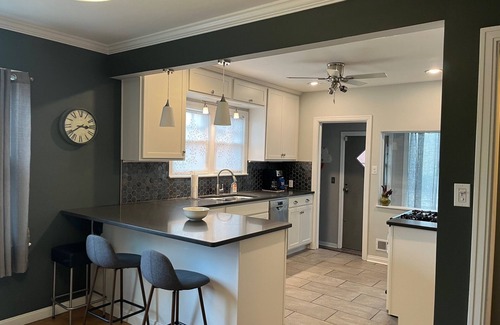 Welcome to this adorable furnished house in the heart of Indianapolis, IN. This charming property features 2 spacious bedrooms with queen beds, a renovated kitchen with cookware, dishes, coffee maker, and dishwasher, a stylish vintage bathroom, and laundry area. Added bonus is off-street parking in a private driveway with a covered carport, and a private fenced backyard for relaxing. You're sure to feel at home at our cozy place filled with historic charm, original hardwood floors, lovely landscaping, and tons of natural light. Located in a quiet neighborhood in the middle of the city, on a tree-lined street with wide sidewalks and pocket parks, minutes from the Monon Trail, Fall Creek Trail, Downtown, Bottleworks District, Broad Ripple, Children’s Museum, State Fairgrounds, and the Art Museum. And, 9 miles (approx. 20 min drive) to Indianapolis Motor Speedway. Easy access to public transit. There are plenty of locally owned coffee shops and restaurants within 5 minutes of this home. This safe neighborhood is a tight-knit community with highly regarded neighbors, many of whom have lived on this block for decades. The homeowners lived in this home for 20 years and recently moved, but still live nearby and are available if anything arises, or to provide information for eateries and activities so visitors can make the most of their stay. Tenants are expected to be respectful of this quiet, owner-occupied residential community. No parties, quiet hours after 11pm please.